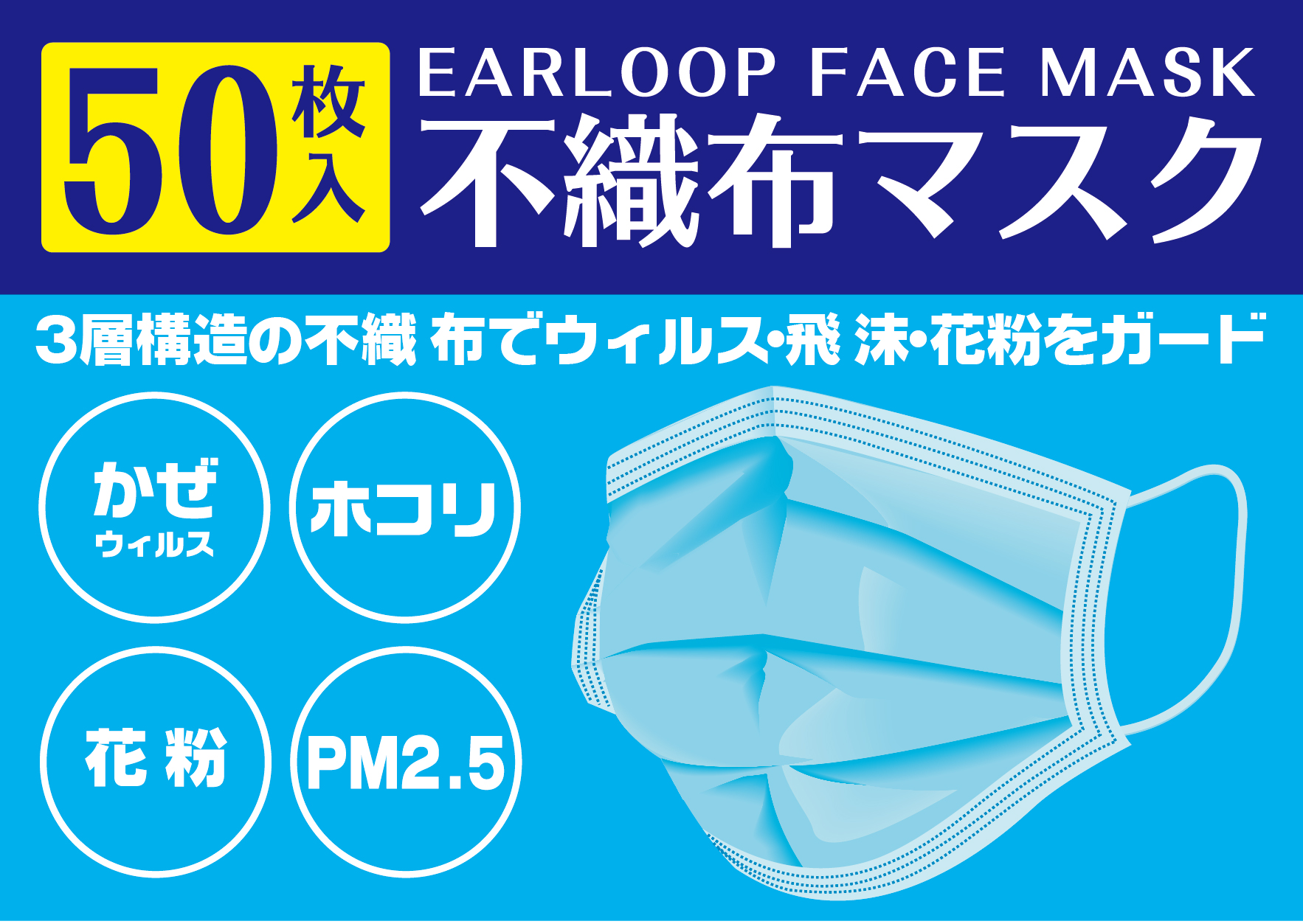 第二弾は販売元ムーヴアクション株式会社のオリジナルマスクで、1箱50枚、価格は税込2,250円〜(1枚あたり45円〜)の販売となります。